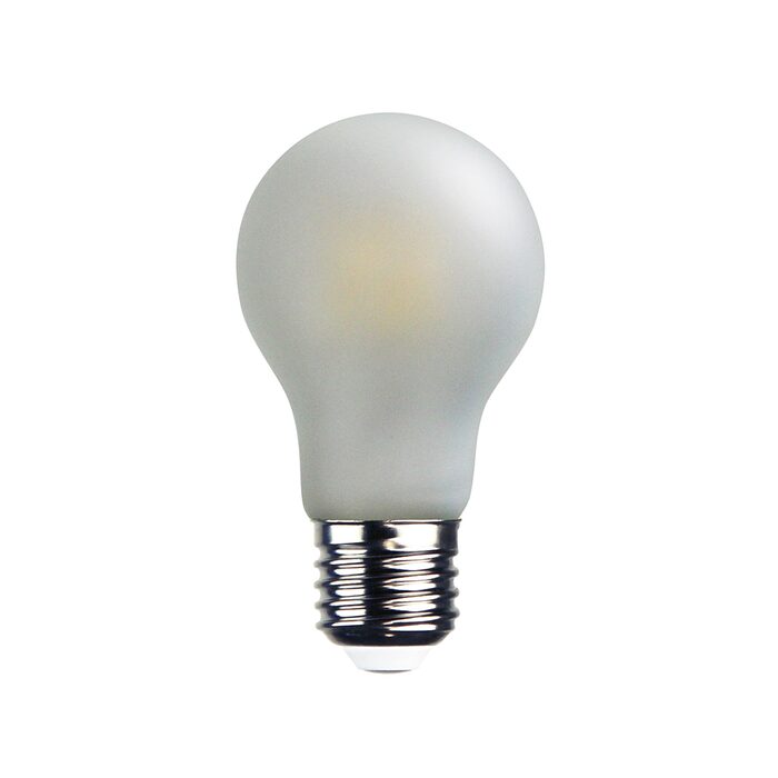 Classic A60 shaped LED retrofit globe, featuring LED filaments inside a frosted, matt glass.
