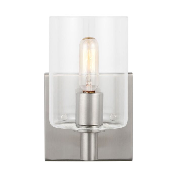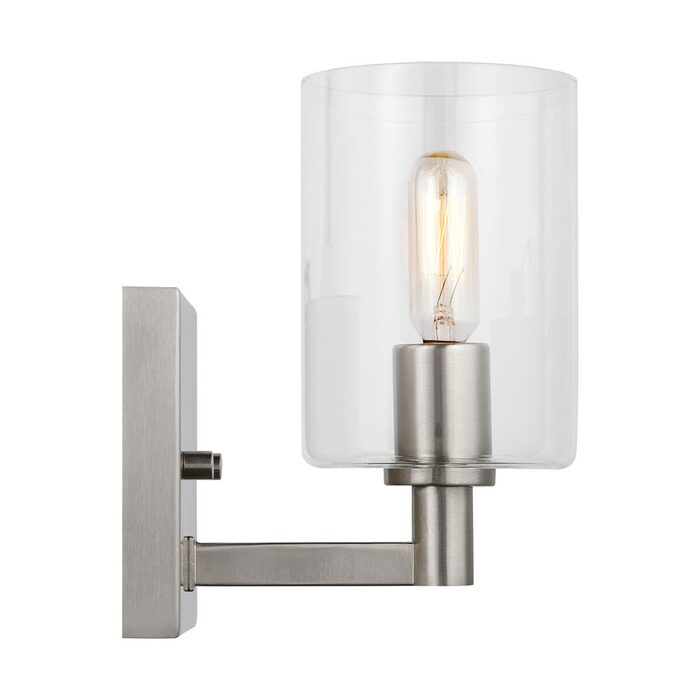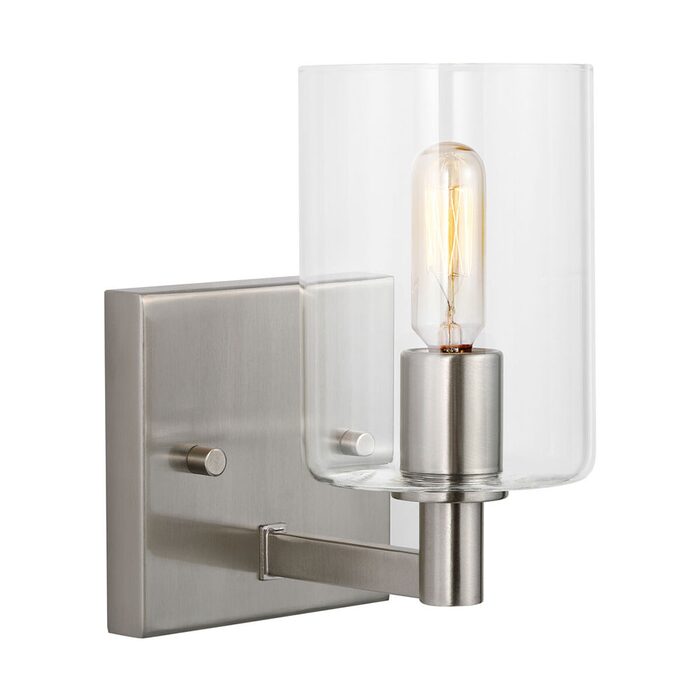 The Fullton one light wall sconce in brushed nickel silver is sleek, contemporary, and uber minimalistic.