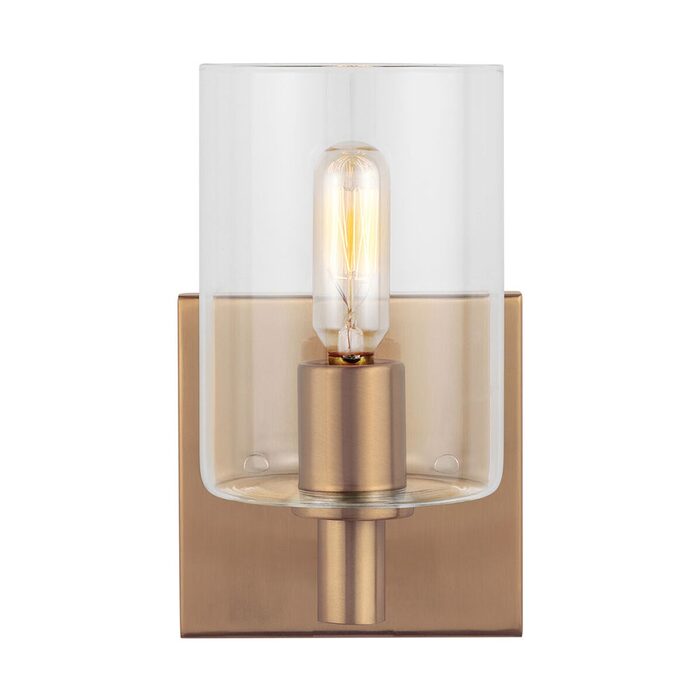 The Fullton one light wall sconce in satin brass is sleek, contemporary, and uber minimalistic.