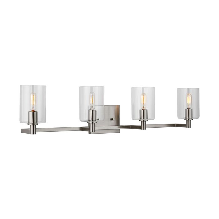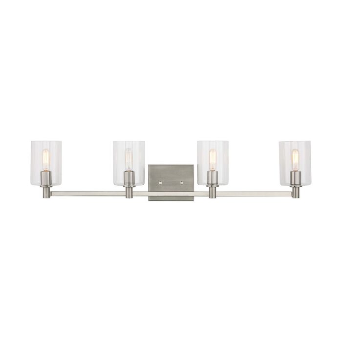 The Fullton four light wall sconce in brushed nickel silver is sleek, contemporary, and uber minimalistic.