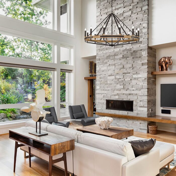 Crafted with a natural wood outer ring and square tube iron arms, it seamlessly marries organic elements with a touch of modernity.