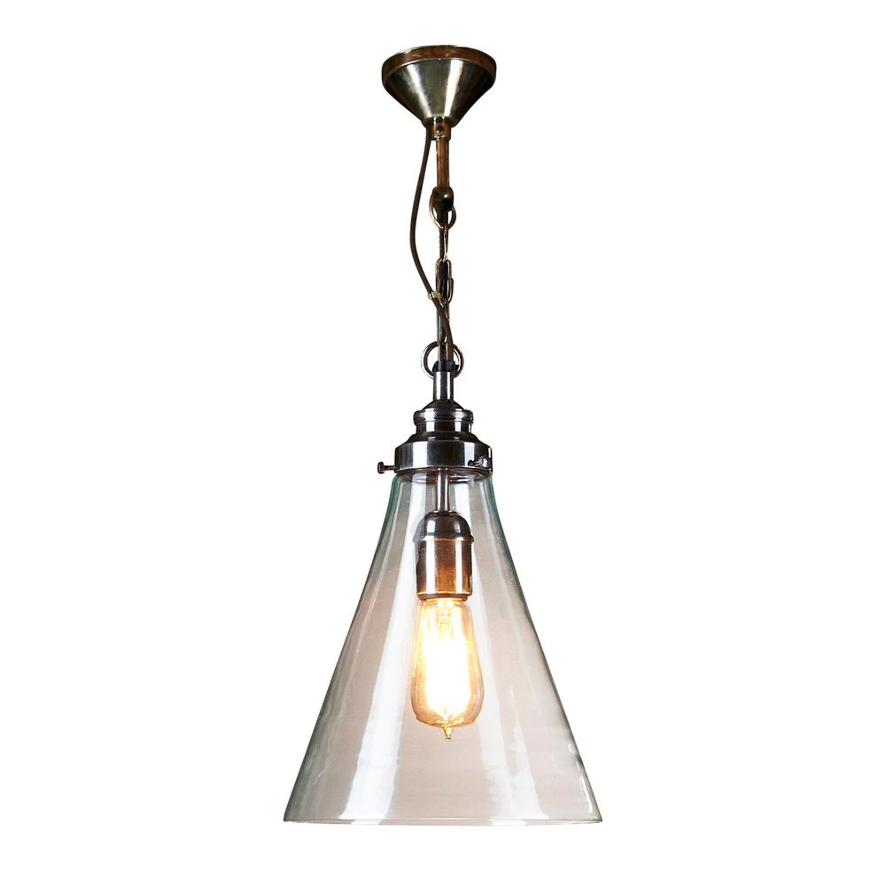 Our Gadsden pendant is the ideal fixture for innovation and modern design with clear cone glass shade.