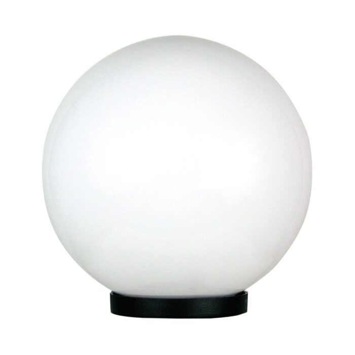 Galactic opal acrylic outdoor post top is available in six sizes from 20-50cm in diameter. Supplied complete with a black ABS plastic base which fits onto a 60mm (outside diameter) post.