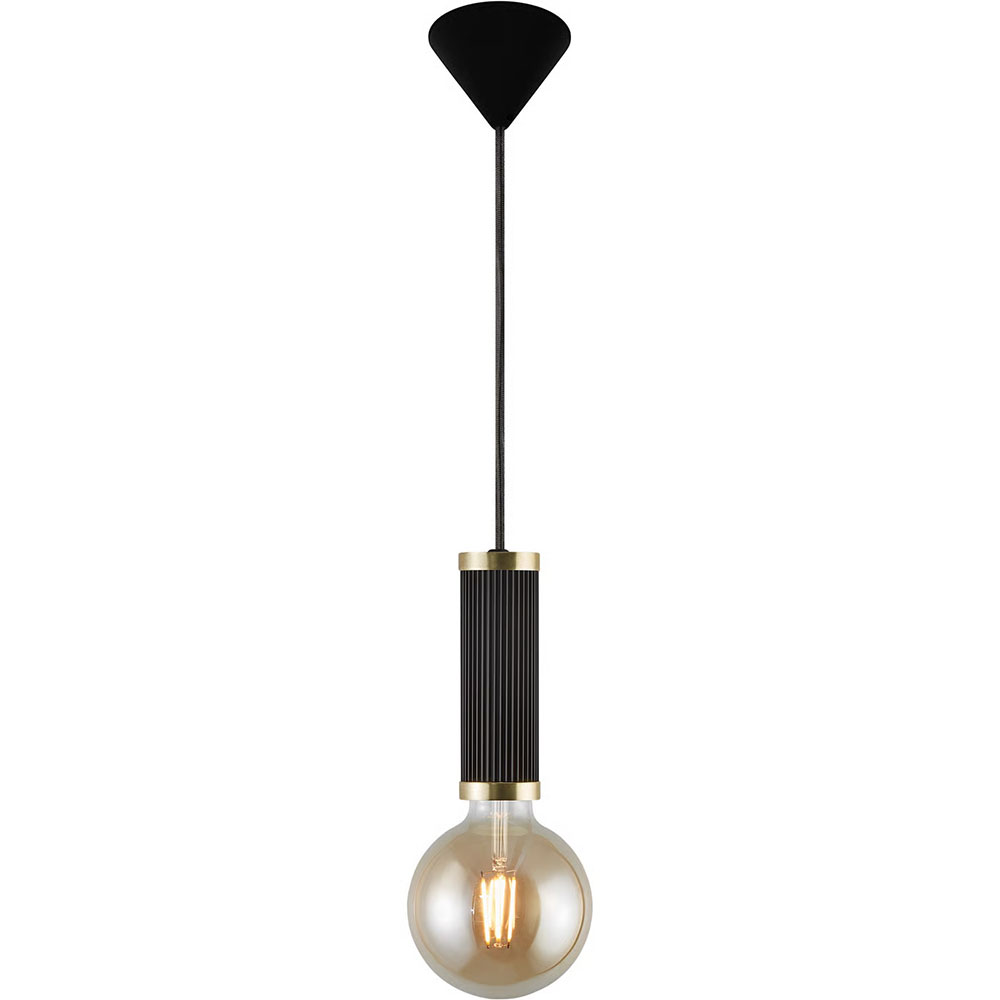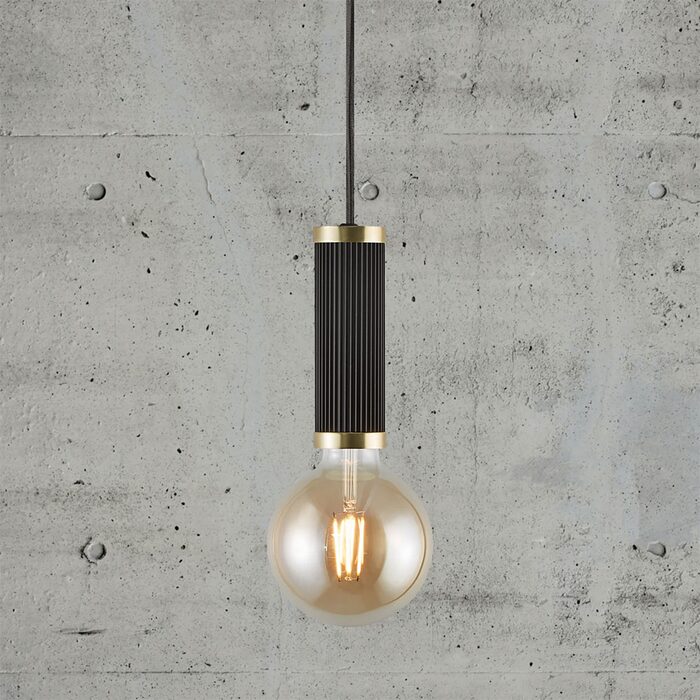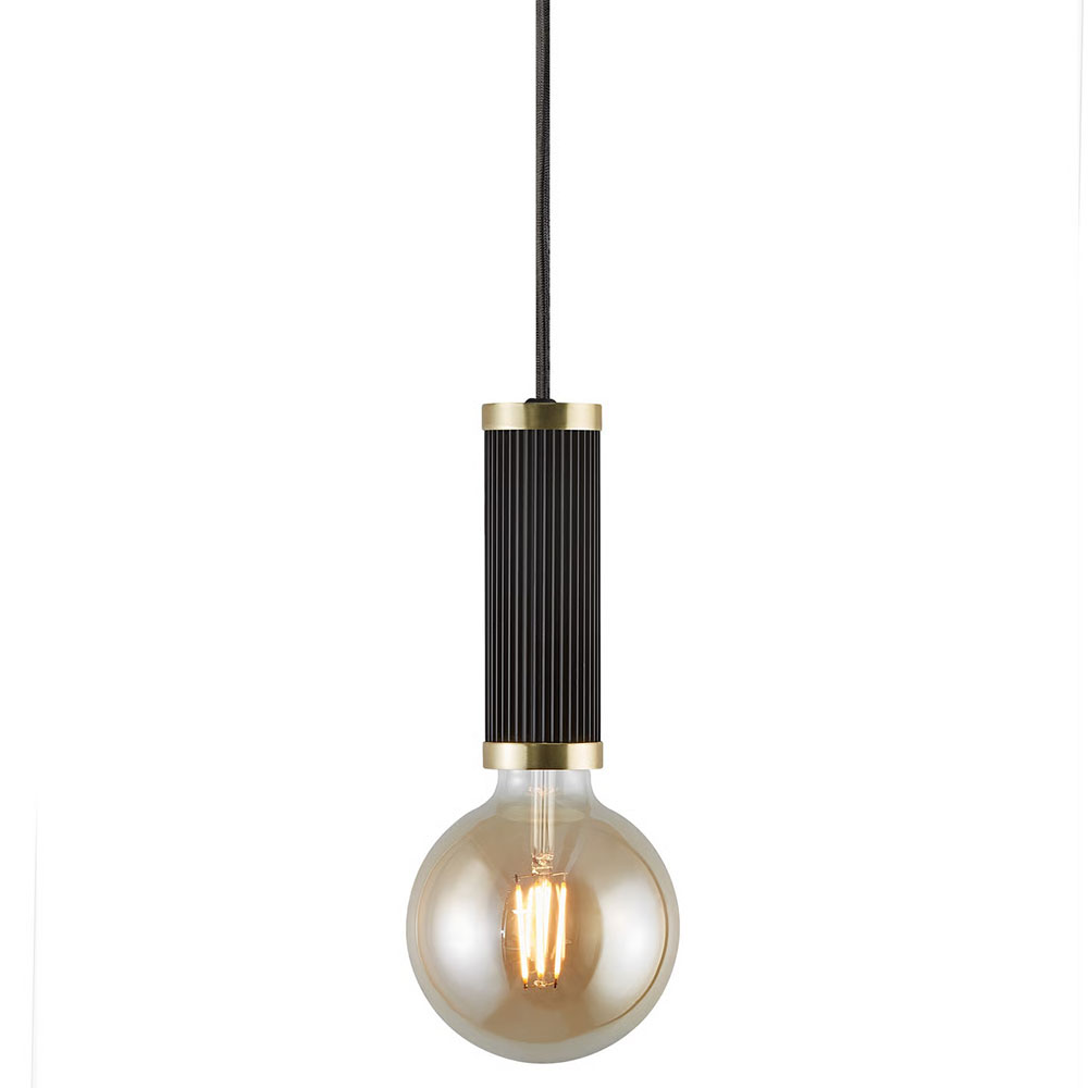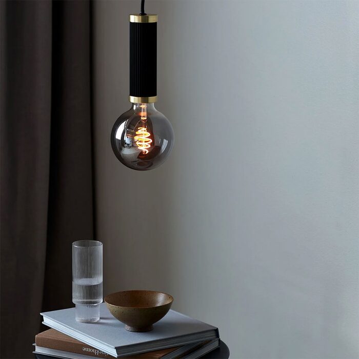 Add a decorative bulb to the fine Galloway socket with grooved surface and elegant brass details - it results in a beautiful pendant, both turned on and off. Delivered excl. light source.