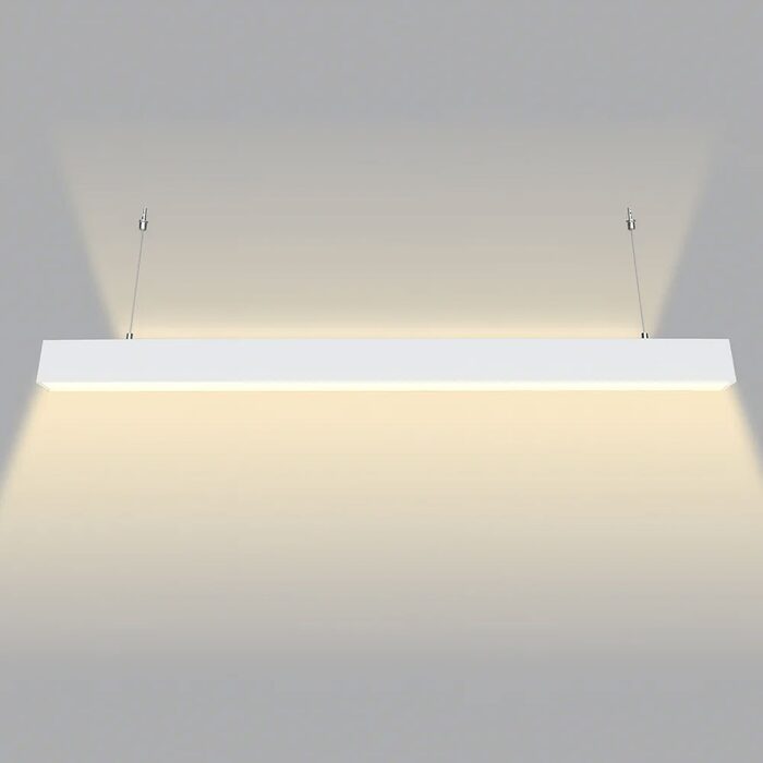 Modern linear pendant light with selectable wattage and CCT via an integrated DIP switch.
