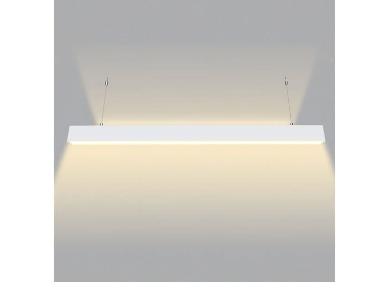 Modern linear pendant light with selectable wattage and CCT via an integrated DIP switch.