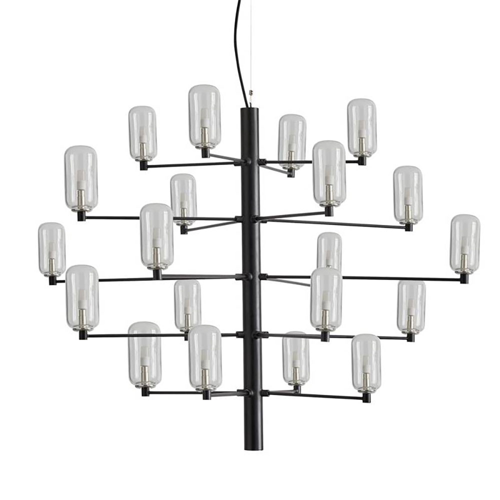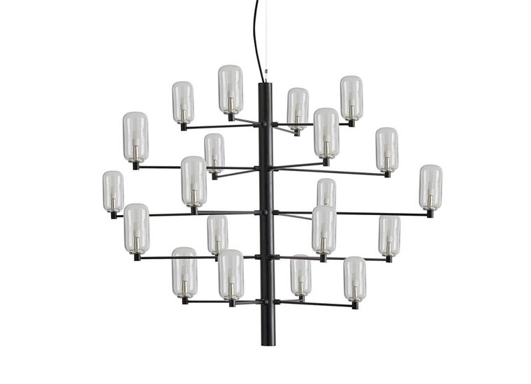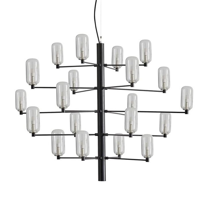 GAND LED Modern Chandelier By Pepe Fornas, Twenty-Bulb Lampholder with a Matte Black or Chrome-Plated Frame.