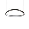 Modern LED chandelier with powder coated or plated metal canopy and lampshade.