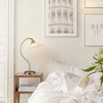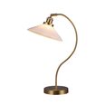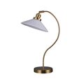 The Gemma Glass Table Lamp blends vintage charm with modern functionality, featuring a curved brass stand and a white or green glass shade for a timeless, sophisticated look.