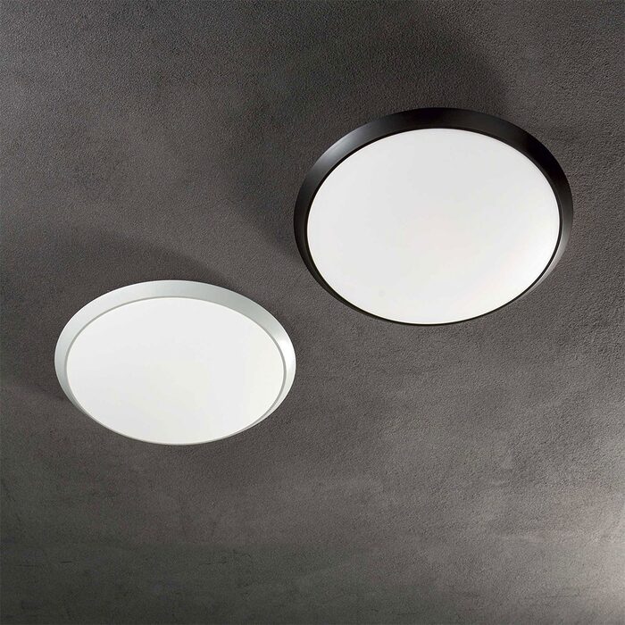 This modern ceiling light features a plastic base and a matt white polycarbonate diffuser.