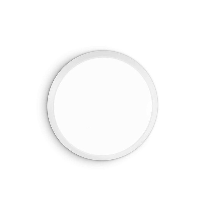 This modern ceiling light features a plastic base and a matt white polycarbonate diffuser.