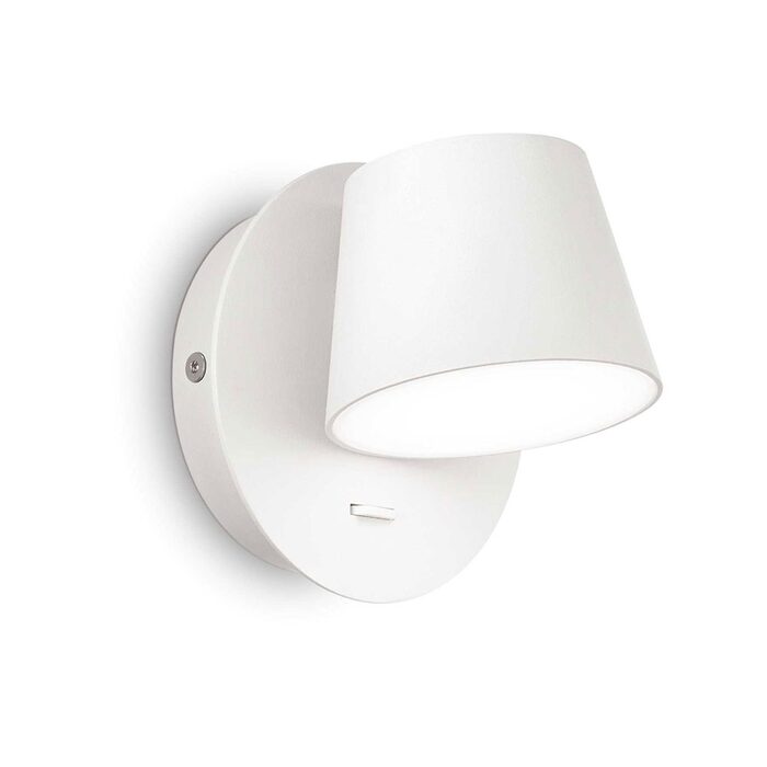 Gim is a small modern wall lamp, characterized by a simple and clean design, consisting of a round attachment with a cone shaped diffuser.