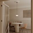 Gina Pendant Light by Aromas, designed by Pepe Fornas, features a beautifully curved, semi-circular form that creates a soft, sculptural silhouette.