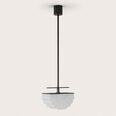 Gina Pendant Light by Aromas, designed by Pepe Fornas, features a beautifully curved, semi-circular form that creates a soft, sculptural silhouette.