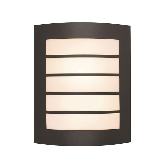 The Brilliant Gladstone Grilled Bunker Light. The modern curved wall light constructed with Charcoal cover and grilled design, strong poly-carbonate diffuser.