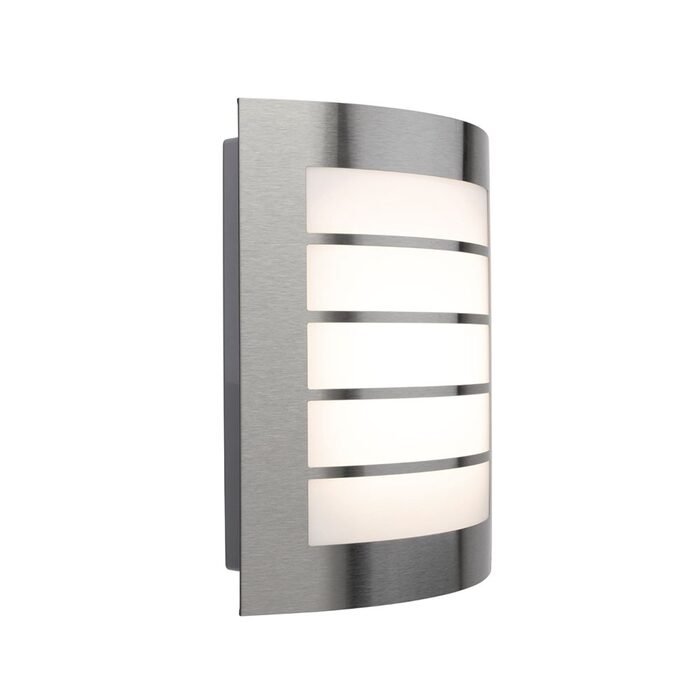 The Brilliant Gladstone Grilled Bunker Light. The modern curved wall light constructed with Stainless steel cover and grilled design, strong poly-carbonate diffuser.