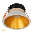 The Havit Gleam HV5528D2W-WG is a 9W fixed, recessed LED downlight with a gold frame and chrome insert, designed for low-glare ambient lighting.