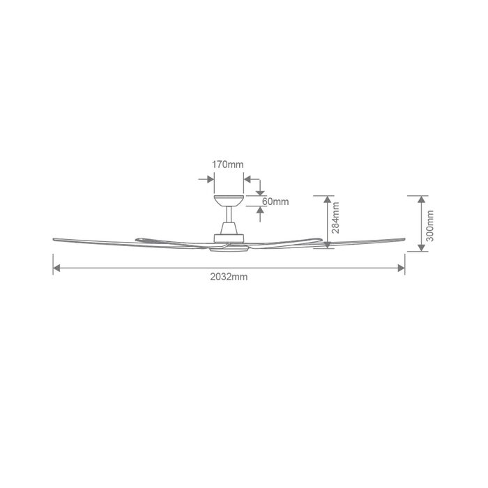 Available in a 6 Blade 80” 2030mm blade length with the choice of an 18W LED CCT Switchable light Kit as an optional accessory if a light option is required.