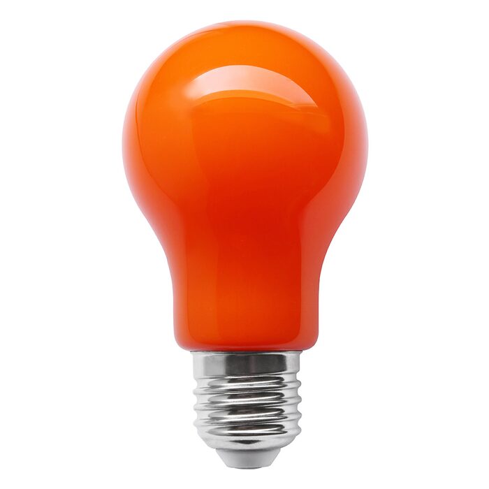LED GLS orange globe, uses 80 percent less energy than standard equivalent halogen globes.