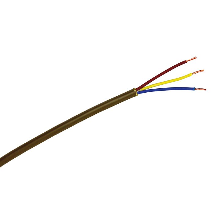 Gold 3-Core circular PVC flex, as used in many decorative light fittings. Sold by the metre.