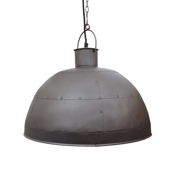 A riveted dome pendant in two rustic finishes. This pendant is designed to patina over time for a vintage aesthetic.
