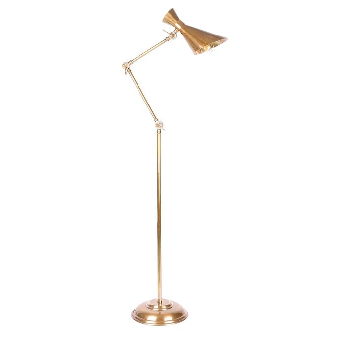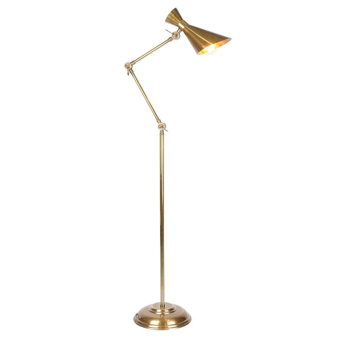 Our Grasshopper floor lamp in antique brass is a sleek and stylish lighting fixture designed to add a touch of elegance to any room. The lamp features a slim and round metal base, crafted from brass and finished in an antique brass color.