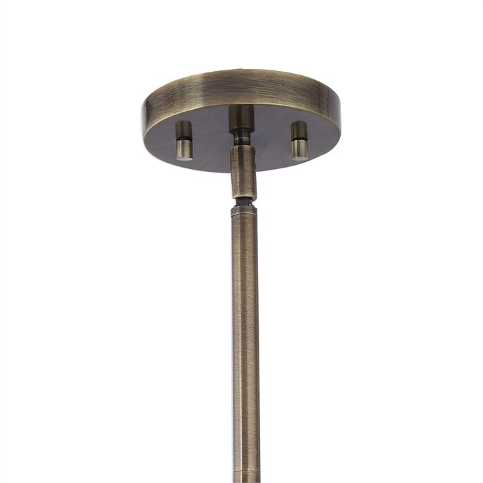 The aged brass finish has an ombre effect giving a deeper hue of antique darkening to some areas and brightness to others, rendering depth to the overall fixture.