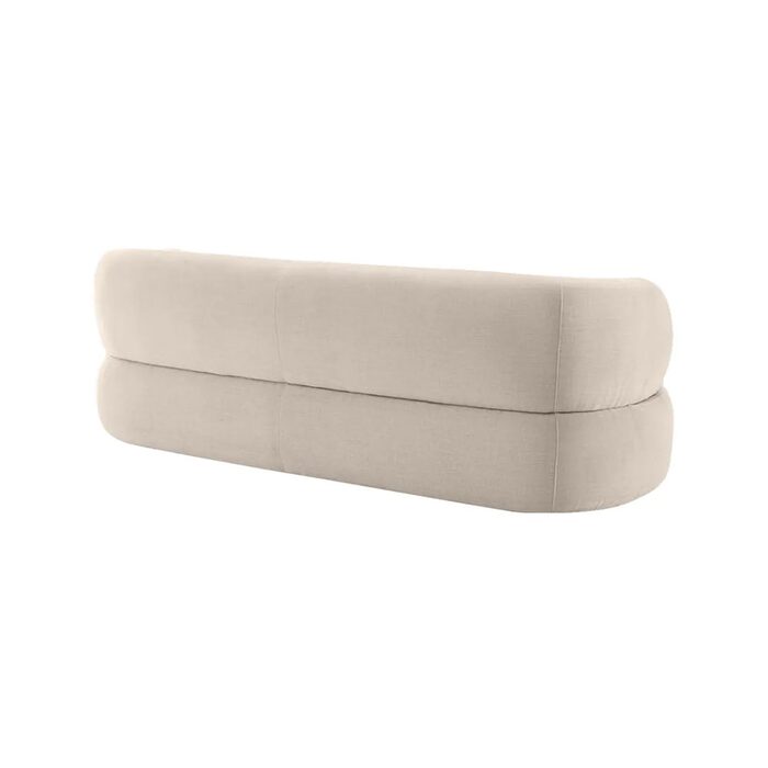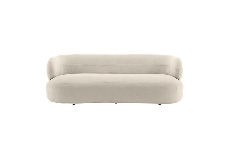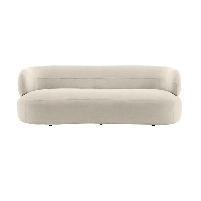Transform your living space with this elegant curved sofa, upholstered in a soft, textured natural chenille fabric.