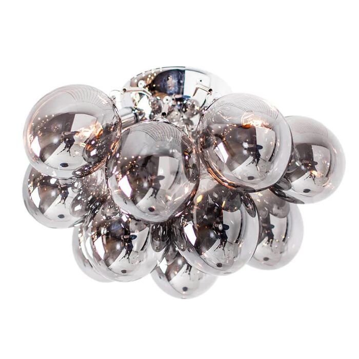 It is equipped with 12 glass shades, each adorned with a beautiful smoke grey finish that casts a lovely glow.