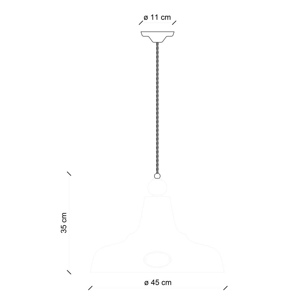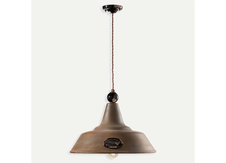 Vintage-inspired pendant light with an industrial vibe. Rustic iron shade with ceramic accents in white. Nostalgic Italian lighting design.