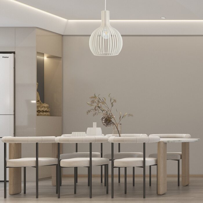 Versatile and enlivening, this unique Pendant, providing illumination with its unique aesthetic, is a trendy decorative piece during the day and an essential source of ambient lighting by night, representing the expressive language of modern and contemporary architecture.