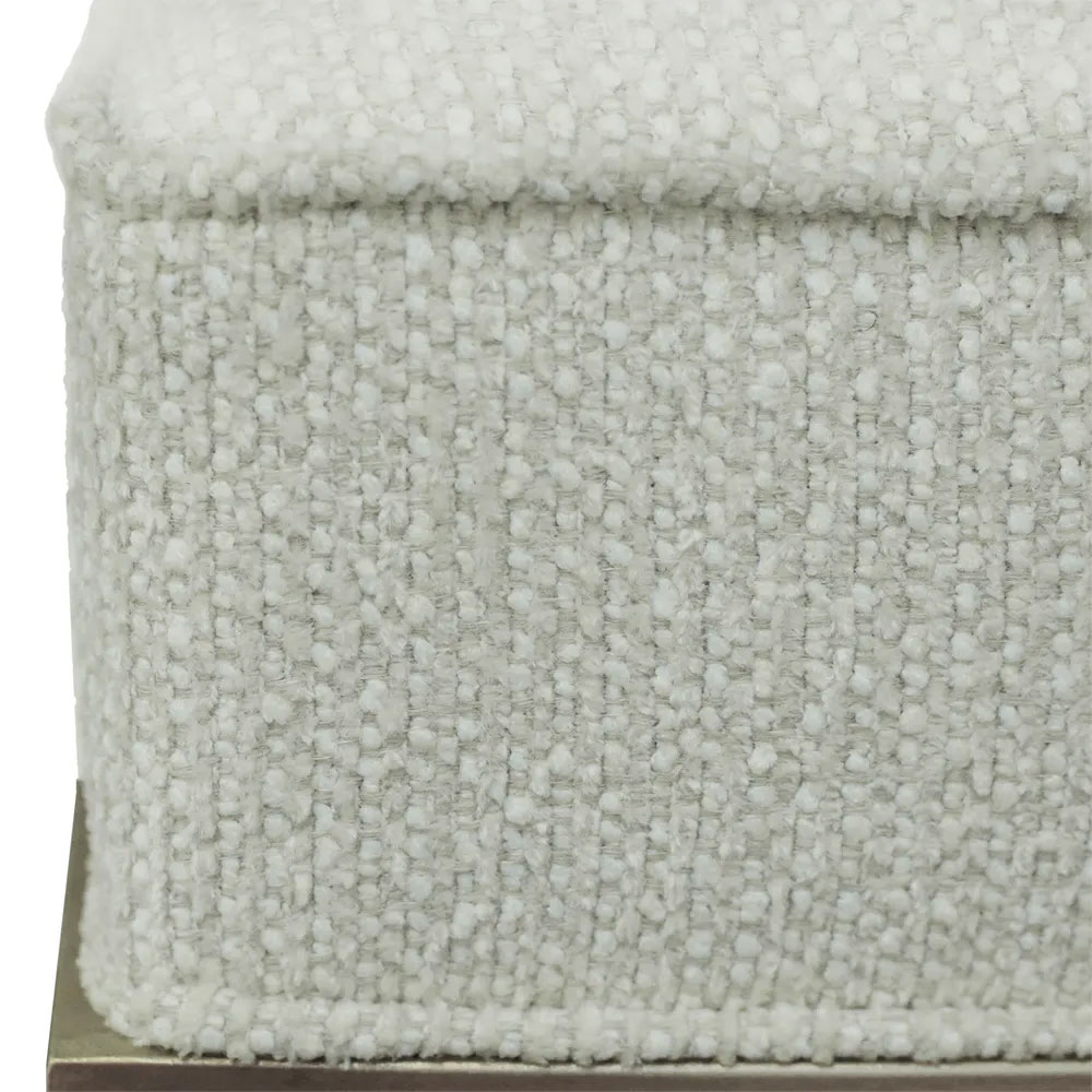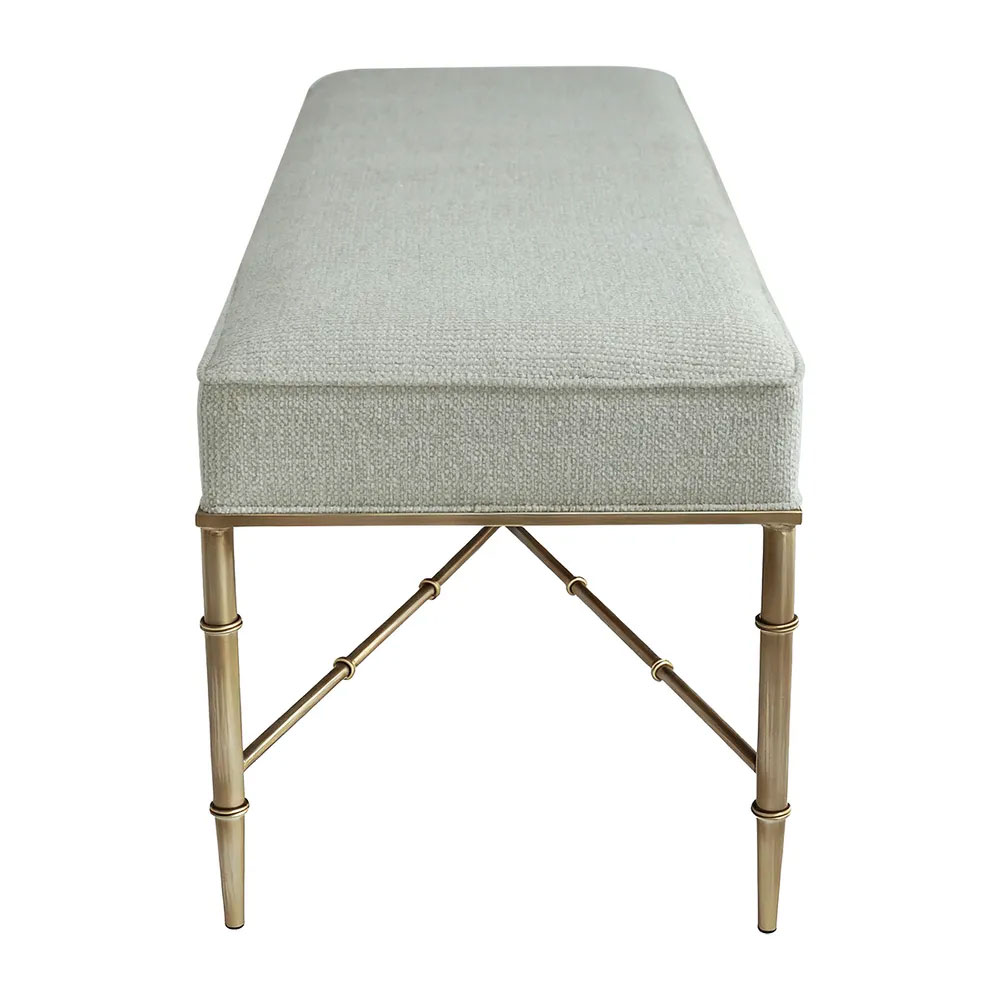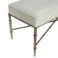 Characterised by its antique brass-finished iron frame with bamboo-inspired detailing, this collection includes both ottomans and stools in natural and salt-and-pepper woven upholstery.