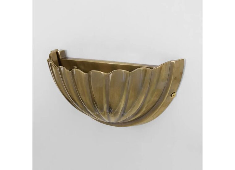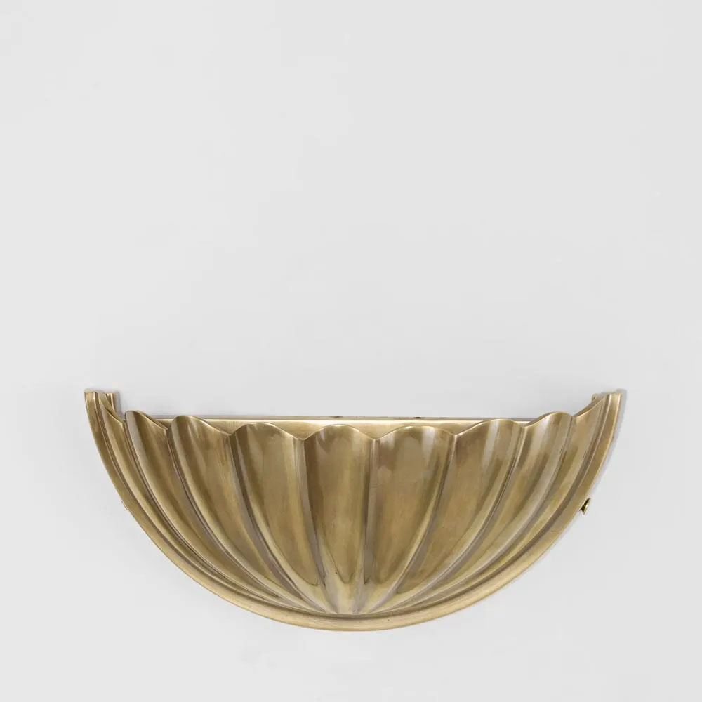 Crafted with an antique brass finish, this wall light features an inverted shell silhouette that casts a warm glow, adding a touch of timeless sophistication to any space.
