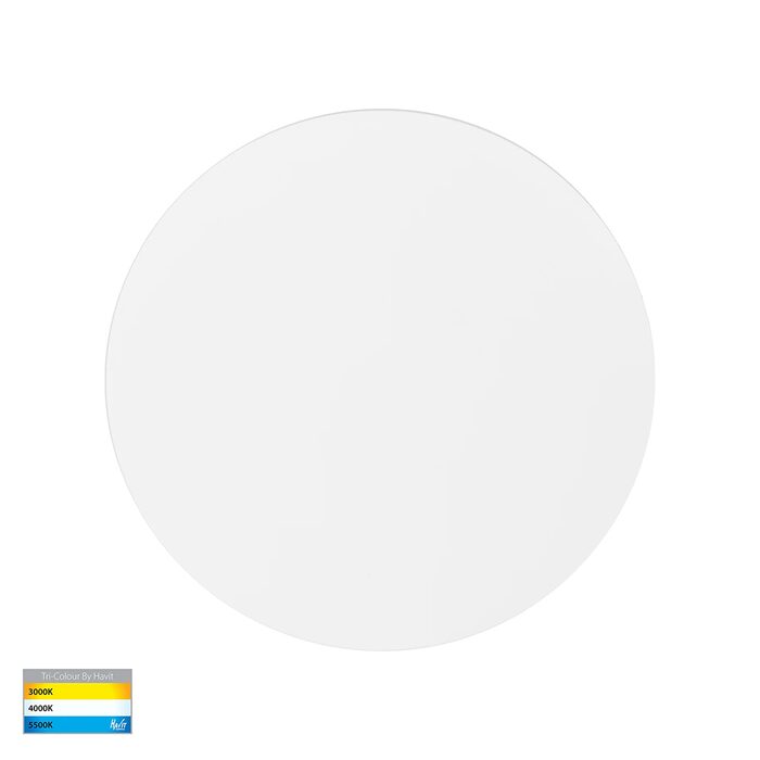 The Havit HV3592T-WHT-12V Halo is a 12V DC, 12W, IP65-rated exterior LED wall light featuring a white, round, powder-coated aluminium design.