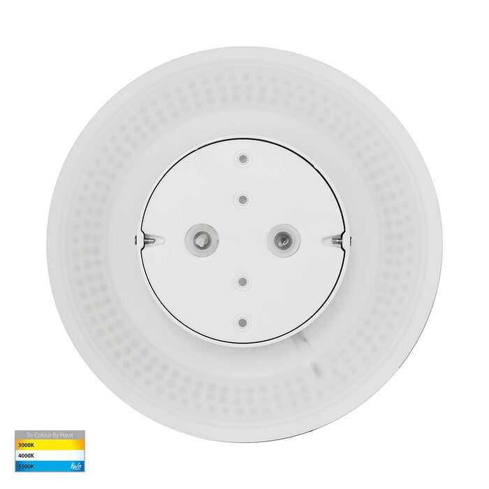 The Havit Lighting HV3593T-WHT-12V is a 250mm-diameter, 18W white LED halo wall light designed for indoor/outdoor accent lighting.