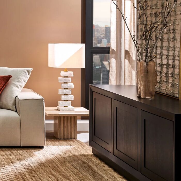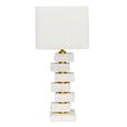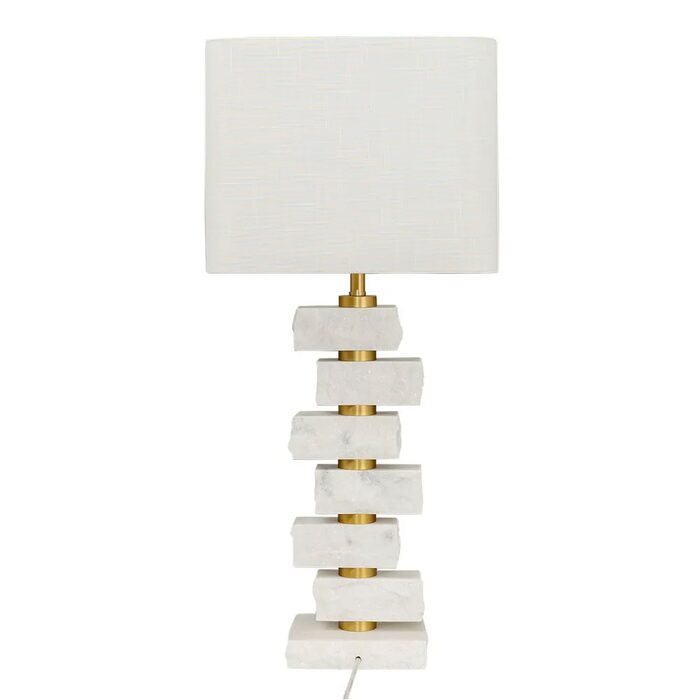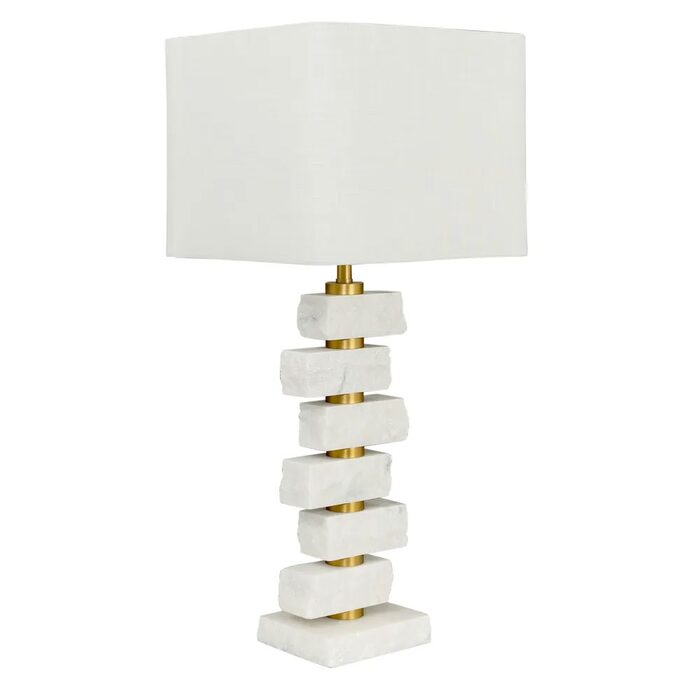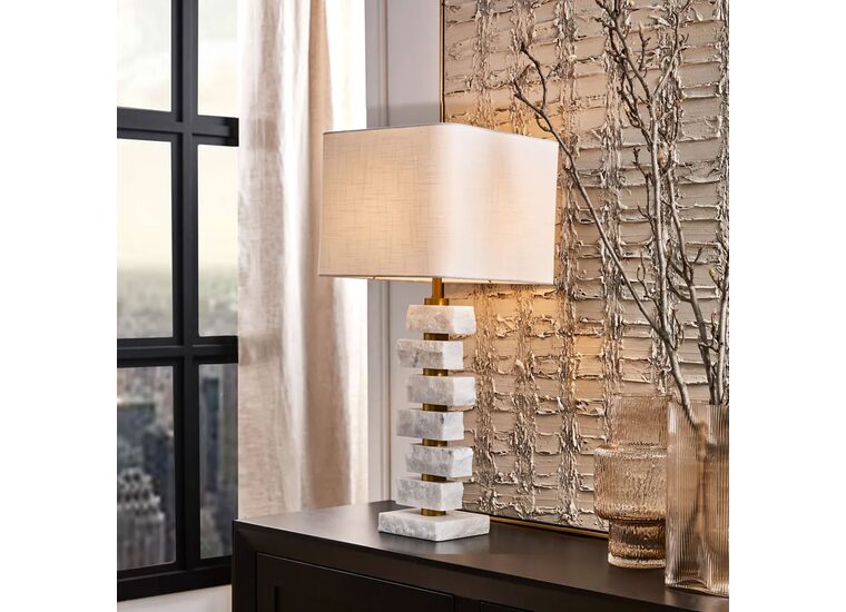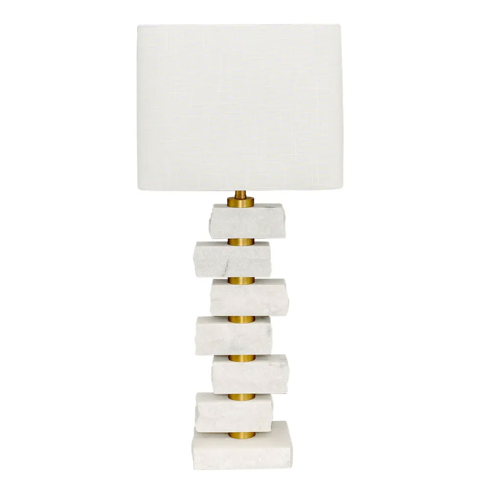 Elevate your home décor with the captivating Hamburg table lamp, featuring a distinctive stacked stone base that radiates modern sophistication.
