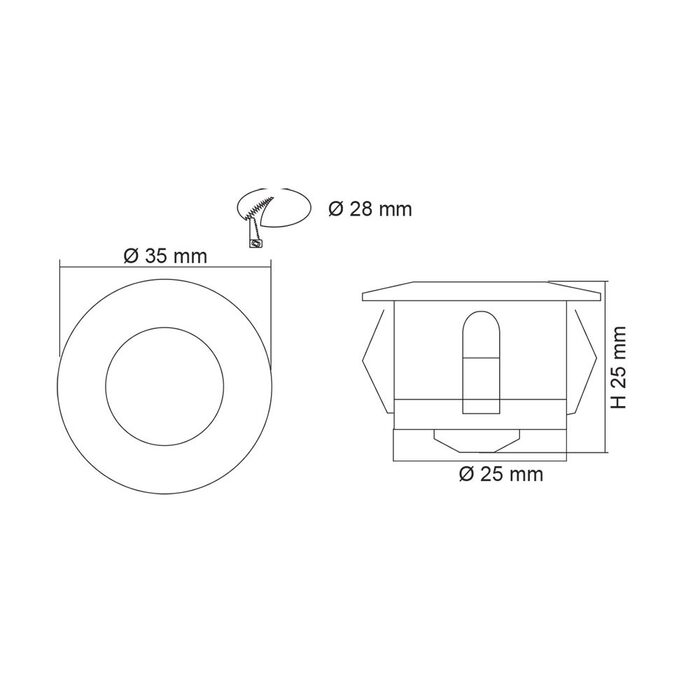- Ø35 mm x H25 mm round deck lights