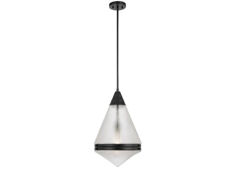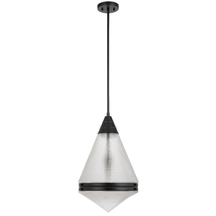 The Harnon Pendant Light blends mid-century modern and art deco influences, featuring a striking conical silhouette with textured glass for a refined, diffused glow.