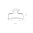 Harper's sleek, retro design elevates the traditional semi-flush mount with a unique opal glass bound by a prominent metal ring and decorative knobs available in Polished Chrome or Heritage Brass.