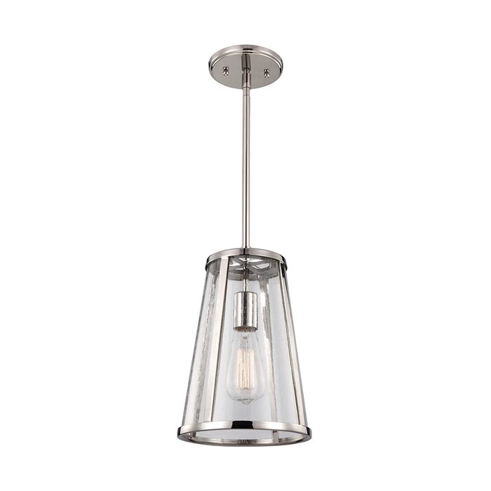 Combining the traditional profile of a tapered shade with on-trend clear seeded glass, the sleek frame and the square-linked chain give the Harrow pendant light collection by Feiss an elevated, contemporary transitional look.
