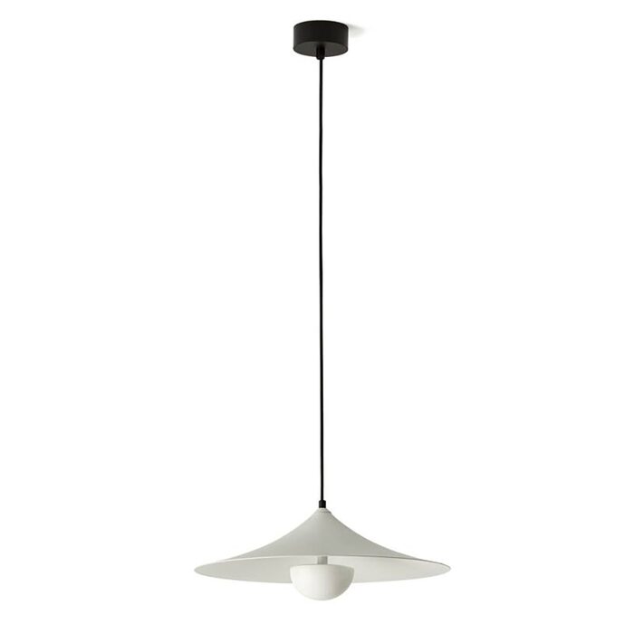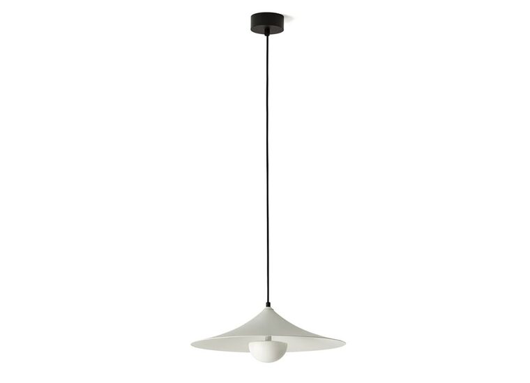 Made of steel with a polished marble hemisphere available in black or veined white. Black textile cable.
