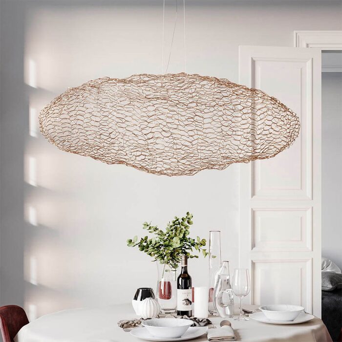 The diaphanous design makes the lamp suitable for both large and small spaces as it lets light through and does not obscure its surroundings.