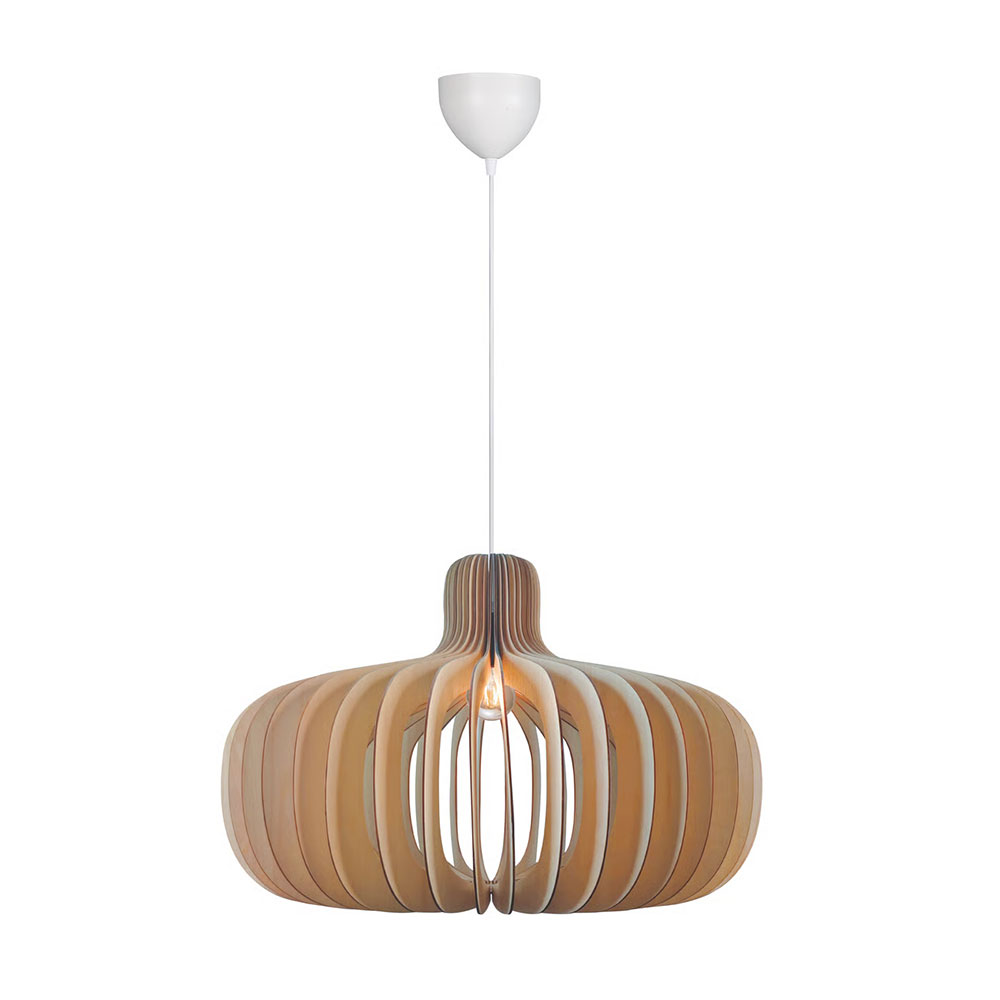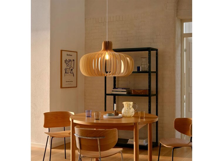 Hazo is an open pendant light, where the wooden structure invites nature inside and creates a beautiful interplay of light and shadow.