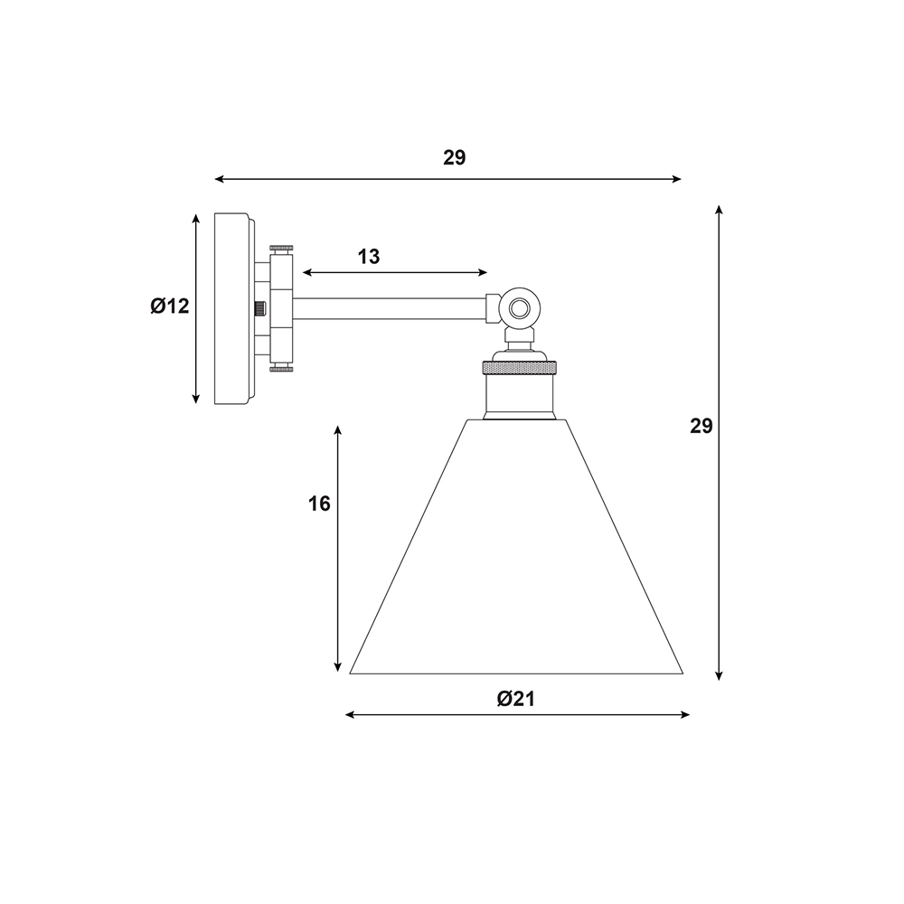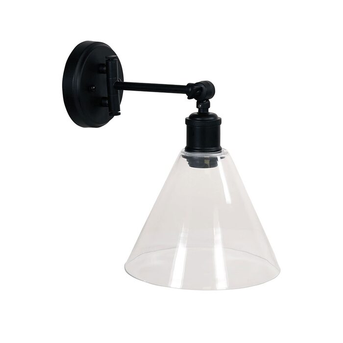 The Heath metal wall light features a swing arm and tapered clear glass shade.