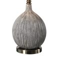 The round hardback drum shade is a light beige linen fabric with natural slubbing.