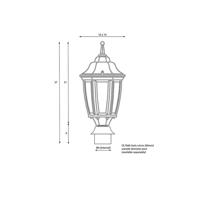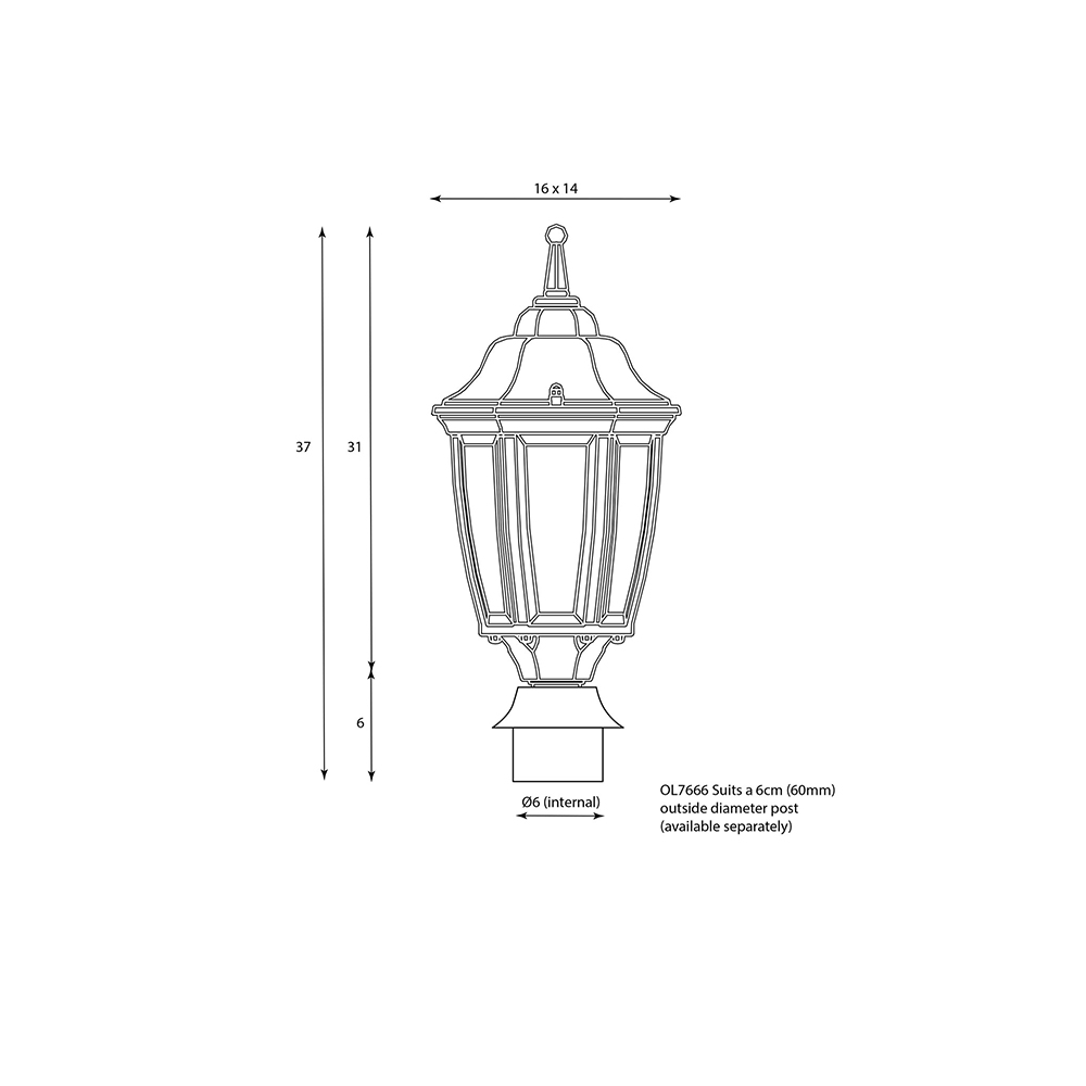 HIGHGATE traditional outdoor post top complete with 60mm fitter.