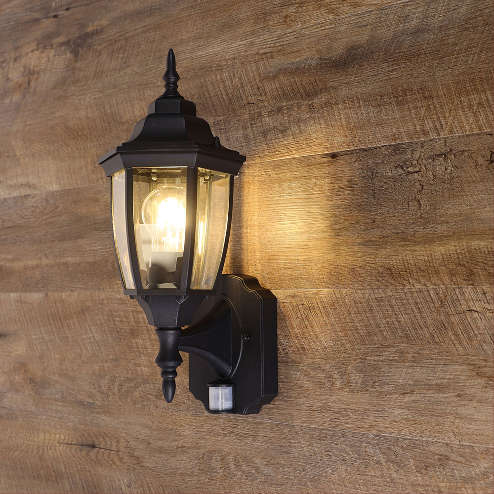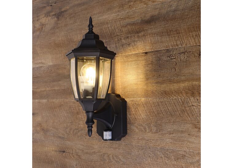 Traditional coach style outdoor wall light with passive infared motion sensor (PIR).