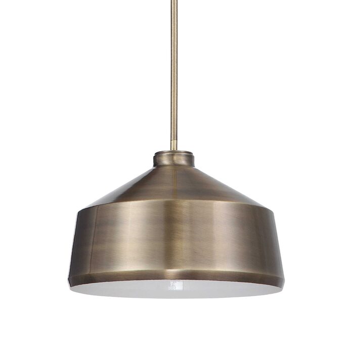 Clean line metal shade 1 Lt. pendant featuring a rich oxidized aged brass finish with a white interior.