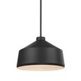 Clean line metal shade 1 Lt. pendant featuring a deep matte black finish with a white interior.