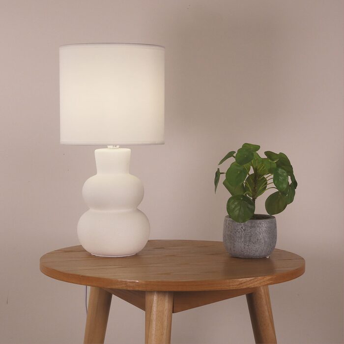 HOLLA curvy textured ceramic table lamp base complete with white fabric shade.